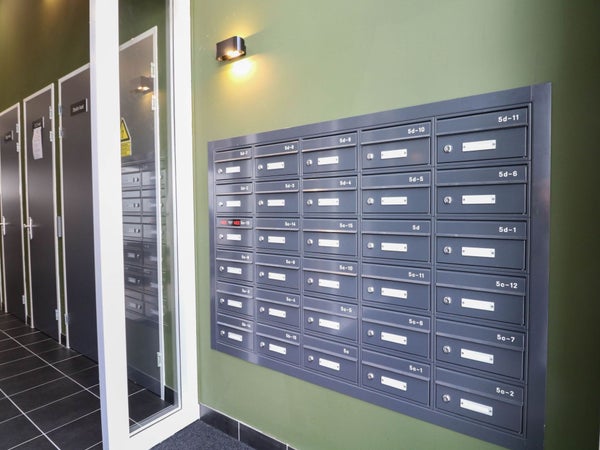 Vous entrez dans le complexe par l'entrée commune avec tableau d'interphonie et boîtes aux lettres menant au hall. Ici, vous pouvez prendre les escaliers ou utiliser l'ascenseur pour accéder à votre appartement.