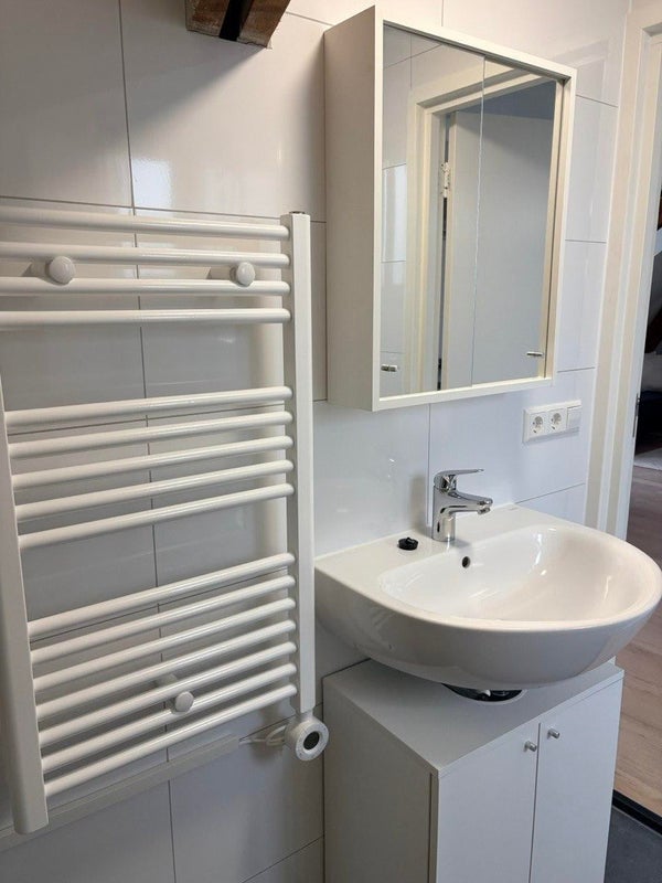 Dans ce loft, vous trouverez un espace de vie spacieux et lumineux avec un agencement ouvert et flexible. La zone sommeil/salon offre suffisamment d'espace pour un lit confortable et un coin salon convivial, vous permettant de vous détendre le soir. La cuisine est entièrement équipée avec tous les appareils nécessaires : plaque à induction, lave-vaisselle, un combiné four à micro-ondes et une suffisante capacité de rangement. La salle de bain est finement finie et équipée d'un espace de rangement supplémentaire et d'un radiateur à serviettes ; de plus, il y a des toilettes séparées pour plus de commodité.
