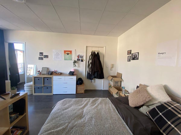 La propiedad cuenta con un estudio privado con cocina y ducha privadas. El baño es compartido en el pasillo.