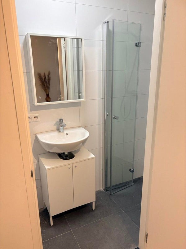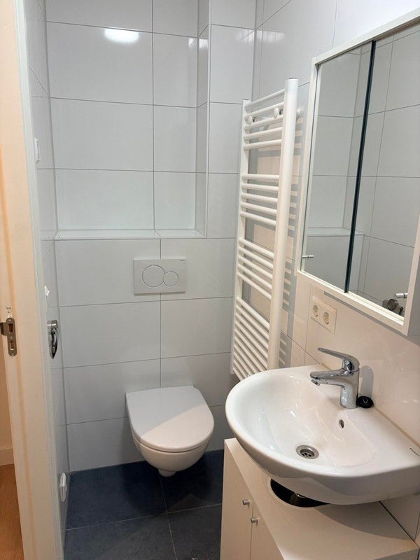 En este apartamento encontrarás una acogedora y luminosa sala de estar con una distribución inteligente. La zona de dormir/sala de estar ofrece suficiente espacio para una cama cómoda y un acogedor rincón de lectura, para que puedas relajarte por la noche. La cocina está completamente equipada con todos los electrodomésticos necesarios: placa de inducción, lavavajillas, un microondas combinado y suficiente espacio de almacenamiento. El baño está bien terminado y cuenta con un inodoro suspendido, ducha, espacio de almacenamiento adicional y un radiador toallero.