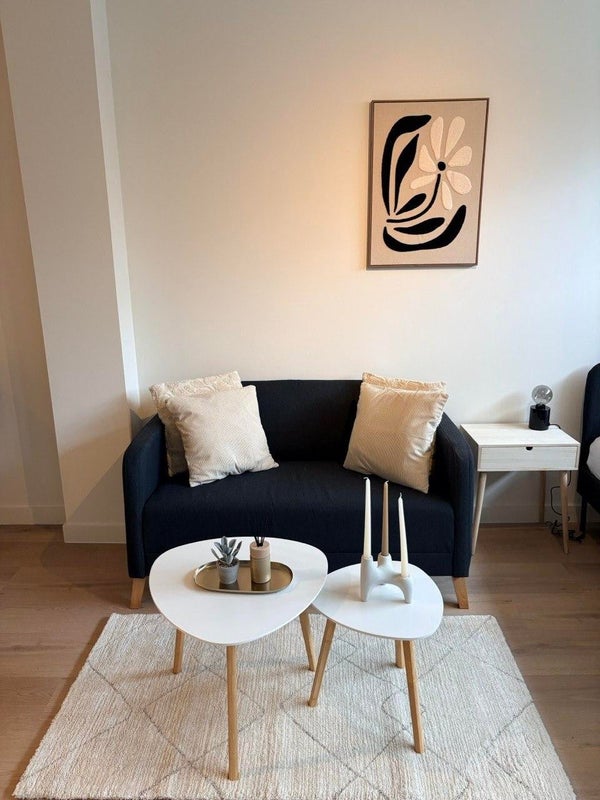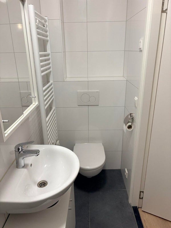 En este apartamento encontrarás una amplia y luminosa sala de estar con una distribución inteligente. La zona de dormir/sala de estar ofrece suficiente espacio para una cama cómoda y un acogedor rincón de estar, para que puedas relajarte por la noche. La cocina está completamente equipada con todos los electrodomésticos necesarios: placa de inducción, lavavajillas, un microondas combinado y suficiente espacio de almacenamiento. El baño está acabado con elegancia y cuenta con un inodoro suspendido, ducha, espacio de almacenamiento adicional y un radiador para toallas.