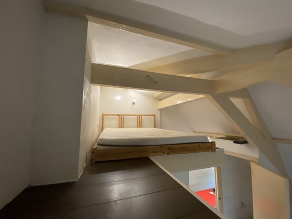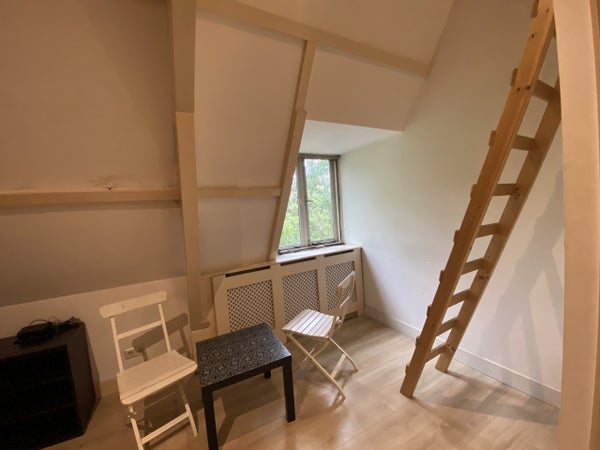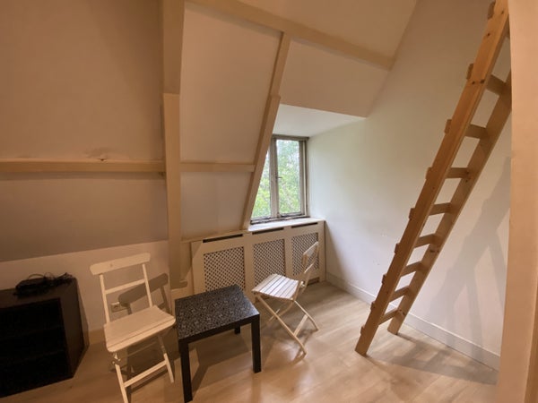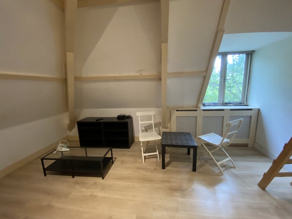Distribución: Entrada por la puerta principal. Por la escalera hasta el segundo piso que da acceso al estudio mediante una puerta propia. El estudio está equipado con muebles completamente nuevos. La cocina dispone de lavavajillas, cocina a gas, horno, congelador y nevera. A través de una puerta se accede al cuarto de baño. El baño cuenta con una ducha a nivel del suelo, inodoro suspendido y lavabo con mueble de baño. Hay cinco lavadoras y cinco secadoras disponibles que deben ser compartidas con 8 residentes. Plaza de aparcamiento privadaJardín compartidoTrastero en el cobertizoVigilancia por cámaraAdecuado para 1 persona.