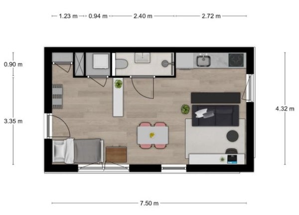 This studio is part of a residential concept with a total of 24 cleverly organized studios. Spread across two floors and an attic, residents have approximately 32 m² of their own living space and a shared outdoor area. Here, privacy and coziness come together beautifully!