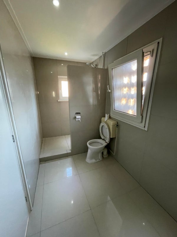The shared bathrooms feature a shower, washbasin with vanity unit, mirror, and toilet. On the ground floor, there is a shared washing machine for the entire house.