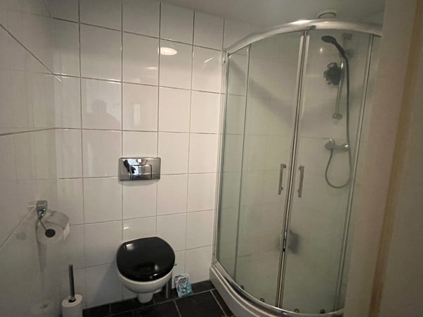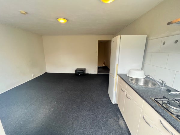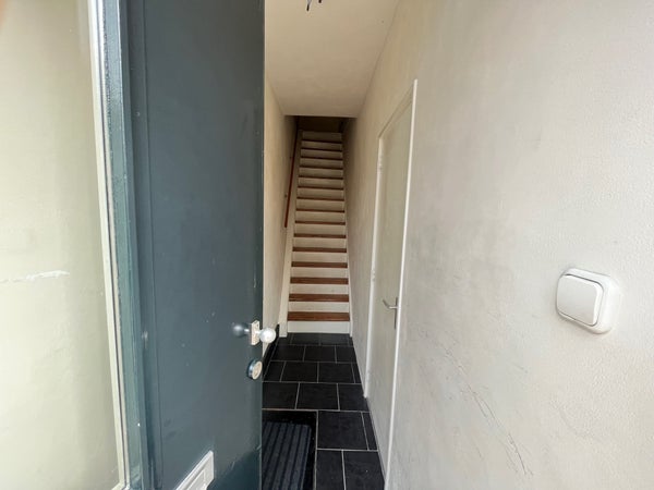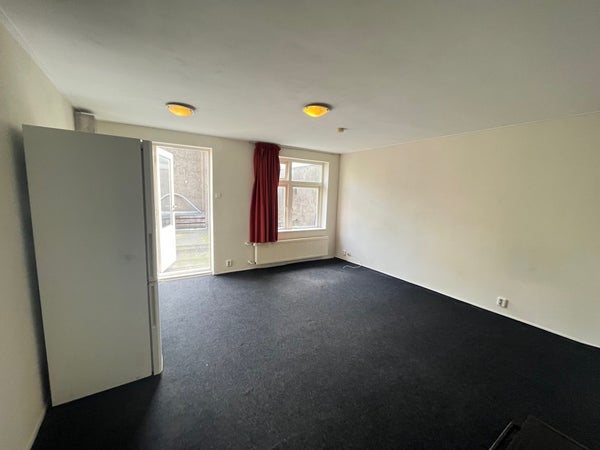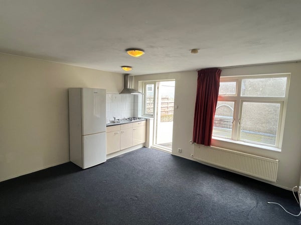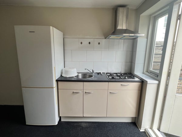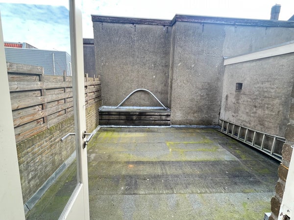 This studio of approx. 25 m2 is located on the 1st floor at the rear and has a large roof terrace. The room is equipped with a private kitchenette. The neat bathroom with shower, toilet, and sink is shared with 1 housemate. On the ground floor, there is also a bicycle storage and a place for white goods appliances.
