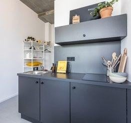 Bassin offers you the privacy of independent living. This studio has a modern black kitchen and a stylish concrete bathroom. The residence is semi-furnished so that you can style the interior according to your own wishes! The walls are freshly painted, and a beautiful PVC floor, lighting, and curtains are included.