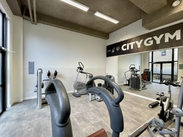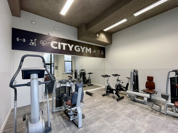 Una palestra comune, un deposito per biciclette e una terrazza solare fanno di questo studio un posto davvero fantastico dove vivere!