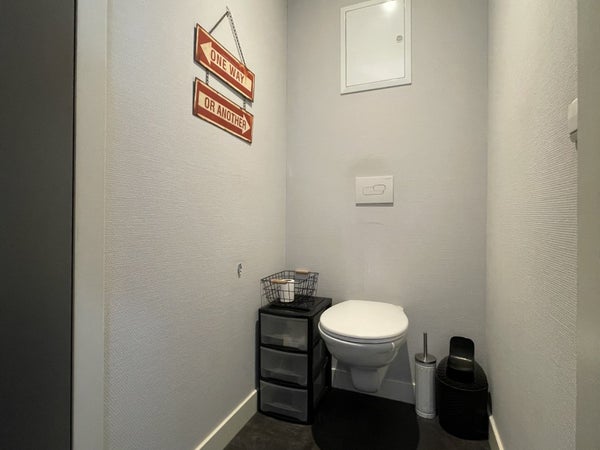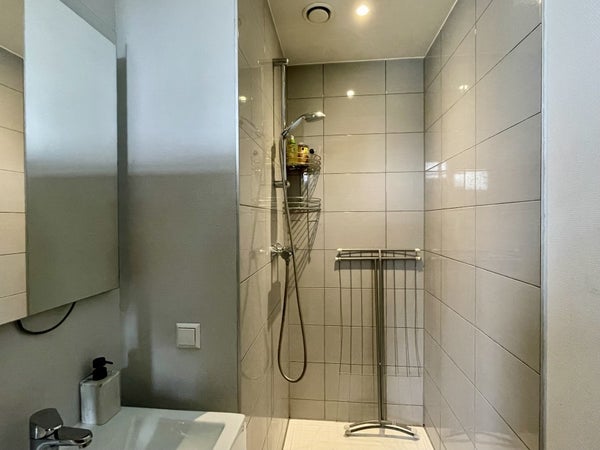 Questo studio di 25 m² è facilmente organizzabile e dispone di una cucina aperta con cappa, piano di cottura a induzione e combinazione frigorifero-freezer. Il bagno è dotato di una doccia a filo e di un mobile lavabo. C'è un WC galleggiante separato. C'è uno spazio comune al primo piano dove si trovano le lavatrici e l'asciugatrice.