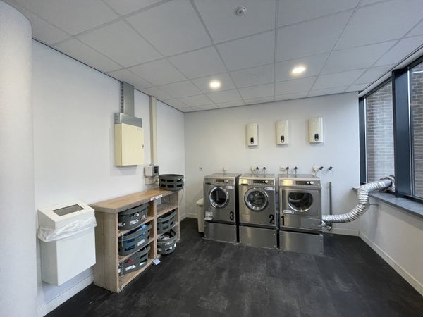 Questo studio di 27 m2 è ben disposto e dispone di una cucina aperta con cappa, piano cottura a induzione e combinato frigorifero-freezer. Il bagno è dotato di doccia a filo pavimento e lavabo. C'è un bagno separato in sospensione. C'è uno spazio comune al primo piano dove si trovano le lavatrici e l'asciugatrice.