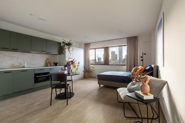 Living in Holland offre 250 moderni studi, camere e appartamenti arredati e pronti per l'uso. Ogni spazio è progettato per un comfort e un'efficienza ottimali, permettendoti di vivere comodamente in uno dei quartieri più vivaci della città.
