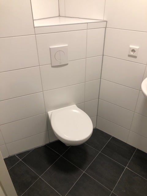 Il bagno è dotato di un wc, doccia, lavabo, porta carta igienica, specchio, ventilazione meccanica e nuove piastrelle. Il bagno è completamente piastrellato.