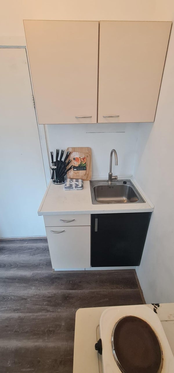 - La cucina è dotata di frigorifero/congelatore, piano cottura a 2 fuochi, microonde.