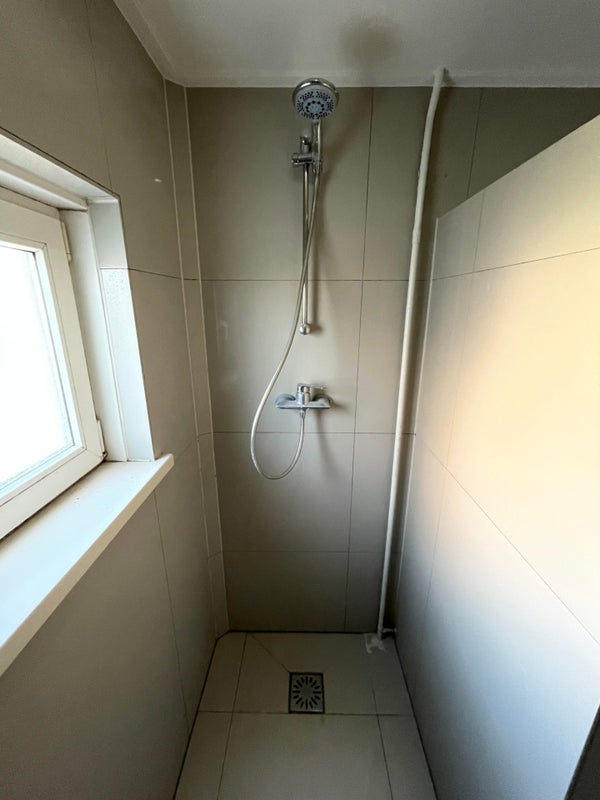 Die Gemeinschaftsbäder sind mit einer Dusche, einem Waschbecken mit Waschtisch, Spiegel und Toilette ausgestattet. Im Erdgeschoss gibt es eine gemeinsame Waschmaschine für das gesamte Haus.