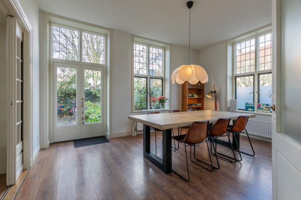 Im Herzen von Amersfoort befindet sich dieses einzigartige Stadthaus, ein stattliches Herrenhaus mit 6 Schlafzimmern und einer Wohnfläche von etwa 168 m². Es bietet einen schönen Garten nach Süden und Parkplätze für zwei Autos auf dem eigenen Grundstück. Dieses Haus liegt entlang des schönen Grachtenrings, mit Blick auf den Onze Lieve Vrouwentoren und verschiedene historische Denkmäler. Im Erdgeschoss befinden sich ein geräumiger Flur mit Zugang zu einem Keller, ein Wohnzimmer mit angrenzendem Esszimmer und eine Küche mit modernen Geräten. Im ersten Stock gibt es 4 Schlafzimmer und ein Badezimmer mit Regendusche. Der zweite Stock verfügt über 2 Schlafzimmer, wobei das vordere Zimmer eine hohe Decke hat, und ein zweites Badezimmer. Mietbedingungen gelten, einschließlich einer Kaution von zwei Monatsmieten.