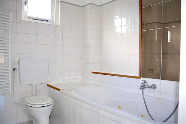 Das Badezimmer ist mit einer Badewanne und einem Waschbecken ausgestattet. Der großzügige Dachboden bietet viele Möglichkeiten und kann hervorragend als viertes Schlafzimmer, Arbeitsbereich oder Hobbyraum genutzt werden. Außerdem gibt es hier die Anschlüsse für Waschmaschine und Trockner.
