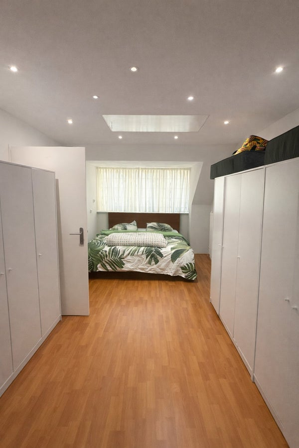 Diese Etage bietet ein großes viertes Schlafzimmer mit viel Stauraum und einen separaten Waschraum, der mit einer Waschmaschine und einem Trockner ausgestattet ist.