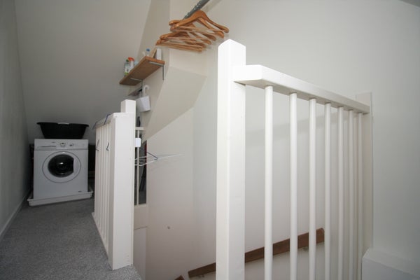 Das 2. Obergeschoss verfügt über ein geräumiges 4. Schlafzimmer mit Einzelbett und Kleiderschrank. Im Flur befindet sich außerdem die Waschmaschine mit Trockenmöglichkeiten.
