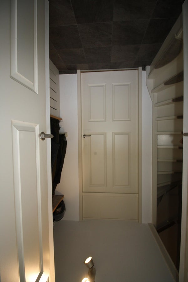 Über den Eingang betritt man die Wohnung. Von hier aus Zugang zu Toilette und Wohnzimmer sowie Treppe zum 1. Stock.