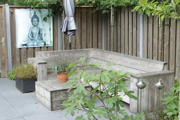 Von der Küche aus hat man Zugang zum Garten. Dieser 10 Meter tiefe und breite Garten ist nach Westen ausgerichtet und verfügt über eine Terrasse, einen Rasen und eine Garage mit elektrisch betriebenem Tor.