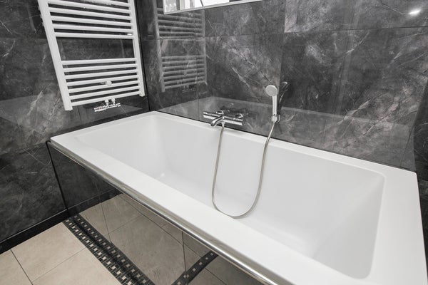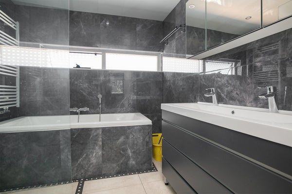 Drei Schlafzimmer, separates WC mit Waschbecken. Das Badezimmer mit Dusche, Badewanne und Waschbecken verfügt über ein Fenster, das geöffnet werden kann und für natürliches Tageslicht sorgt. Das Badezimmer wurde kürzlich renoviert und sehr modern gestaltet. -
