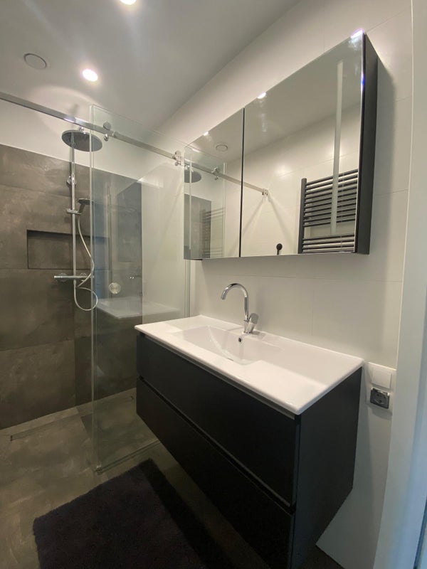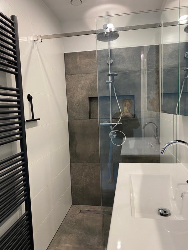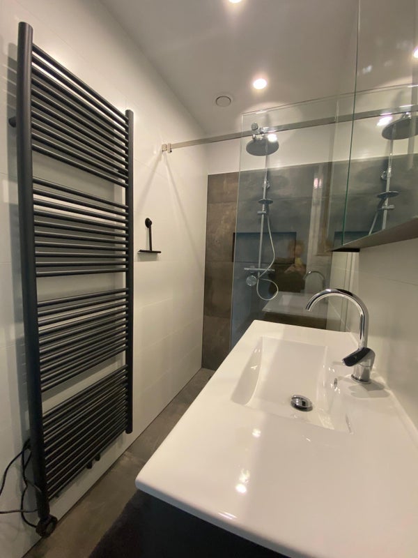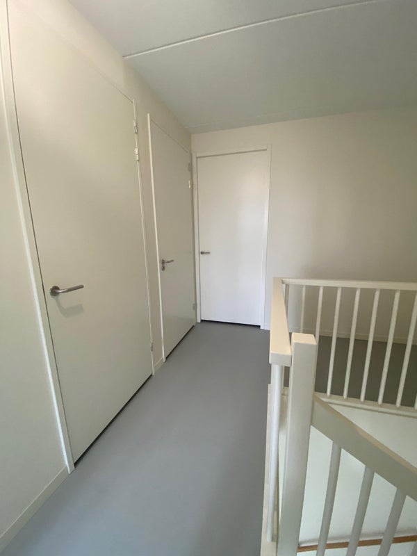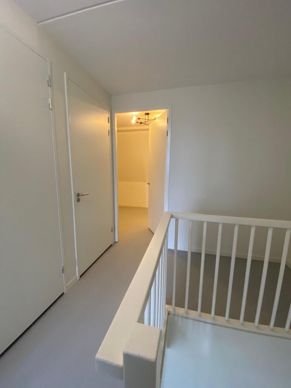 Über die geräumige Treppe gelangen Sie in die 1. Etage. Der Flur gibt Zugang zu allen Räumen. Drei geräumige Schlafzimmer, ein Badezimmer und separate Toilette. Ein großzügiges, helles Hauptschlafzimmer mit Blick auf Wasser und Park. Auf dieser Etage befinden sich außerdem zwei geräumige Schlafzimmer. Das Badezimmer ist ausgestattet mit einer begehbaren Dusche, Badewanne und Doppelwaschbecken mit schönen Schalen. Der Designheizkörper rundet das Ganze ab.