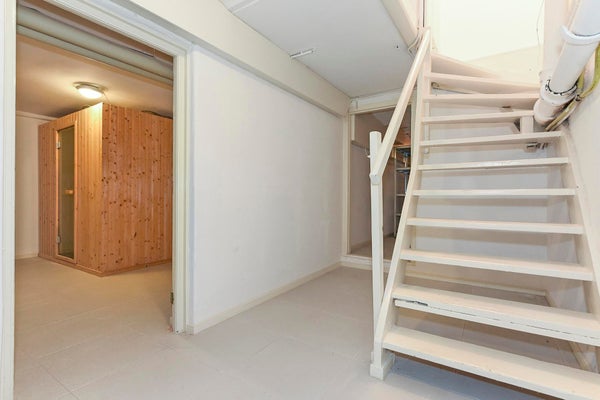 Geräumiger Vorgarten, Eingang mit Zugluftschutztür zum Flur mit Toilette und Tür zum Keller. Der Keller bietet viel Stauraum, einen Stromkasten und eine Sauna. Das Erdgeschoss verfügt über helle Parkettböden, einen Erker auf der Vorderseite, eine Schiebetür zum Hinterhof mit einem Steinschuppen und eine offene Küche mit einer Kompositarbeitsplatte, Kühlschrank, Kombination Mikrowelle, Induktionskochfeld und Geschirrspüler.