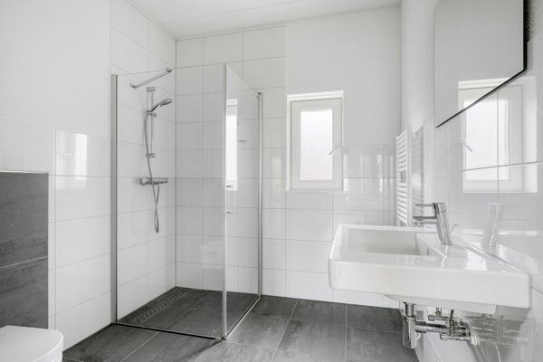 Dieses Reihenhaus ist luxusausgestattet und verfügt über eine komplette Küche mit der notwendigen Einbauküche. Auch das Badezimmer ist luxuriös ausgestattet mit einer modernen Walk-In-Dusche und einer zusätzlichen Toilette. Das Haus hat die höchste Energieklasse und ist mit Solarpaneelen ausgestattet. Komfortabel und nachhaltig, also.