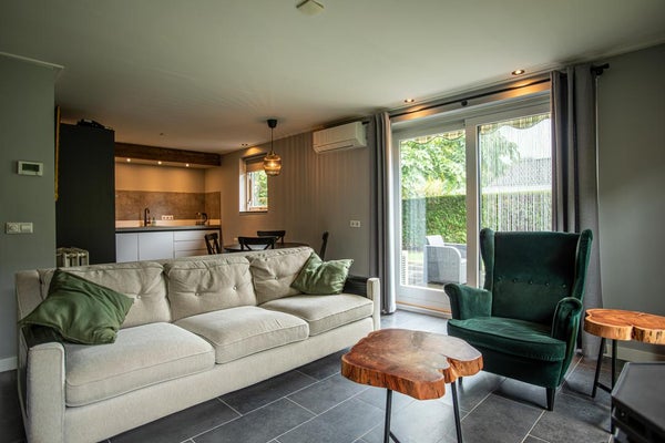 Suchen Sie Wohnraum auf Zeit, während Sie auf Ihr neues Zuhause warten? Diese gut instand gehaltene, modernisierte Ziegel-Bungalow im Bungalowpark "Het Strokelbos" bietet eine komfortable Lösung auf einem Grundstück von 333 m². Die unmöblierte Immobilie umfasst einen Eingang mit Flur, eine geflieste Toilette, ein Schlafzimmer und ein Badezimmer. Das Wohnzimmer mit einer Sitzecke und Holzofen führt zur grifflosen Küche mit modernen Geräten. Es gibt zwei Schlafzimmer, eines mit eingebautem Schrank. Das Badezimmer hat eine begehbare Dusche. Rund um die Bungalow erstreckt sich ein Garten mit süd/südwestlicher Ausrichtung, Terrasse und Rasen. Die Miete beträgt 1.450 € pro Monat, exklusive Energiekosten, mit einer Kaution von einem Monat. Haustiere und Rauchen sind nicht erlaubt.