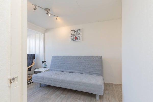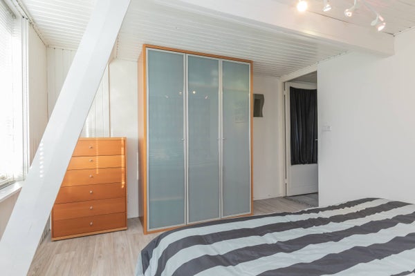 Im ersten Stock bietet der zentrale Flur Zugang zu drei geräumigen Schlafzimmern. Das Hauptschlafzimmer an der Vorderseite ist großzügig gestaltet und mit einem bequemen Doppelbett ausgestattet. An der Rückseite des Hauses befinden sich zwei weitere helle Schlafzimmer, die hervorragend als Kinderzimmer, Gästezimmer oder Homeoffice dienen können. Für die Dinge, die nicht täglich benötigt werden, gibt es über den Flur Zugang zu einem praktischen Stauraum im Dachgeschoss im zweiten Stock. Dieses Haus ist vollständig möbliert und sofort bezugsfertig, was es zur idealen Wahl für alle macht, die Komfort und Bequemlichkeit an einem zentralen Ort in Haarlem suchen.