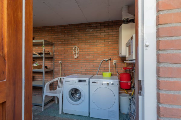 Beim Betreten des Flurs spüren Sie sofort die helle und frische Ausstrahlung des Hauses. Das geräumige Wohnzimmer wurde kürzlich vollständig in modernen, hellen Farben gestrichen und verfügt über einen geschmackvollen Laminatboden, der perfekt mit verschiedenen Einrichtungsstilen harmoniert. Praktische Einbauschränke bieten zusätzlichen Stauraum, ohne die offene Gestaltung des Raums zu beeinträchtigen. Die kürzlich renovierte moderne Küche befindet sich auf der Rückseite des Hauses und ist mit allem Komfort ausgestattet, darunter ein Backofen, ein 5-flammiger Gasherd mit Dunstabzug, eine Kühl-Gefrierkombination und ein Geschirrspüler. Von der Küche aus gelangen Sie in den gemütlichen Stadtgarten, wo sich ein geräumiger Abstellraum für Fahrräder und zusätzlichen Stauraum befindet. Das moderne Badezimmer im Erdgeschoss ist effizient eingerichtet mit einer Duschkabine, einem Waschbecken und einer Toilette.