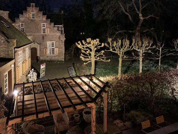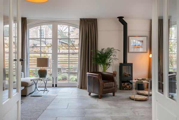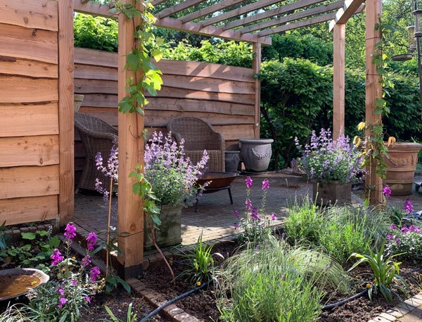 Durch die französischen Türen sowohl auf der linken als auch auf der rechten Seite des Wohnzimmers gelangen Sie in den (11 Meter!) breiten Garten. Im Laufe des Frühlings wird der Garten vollständig von einer alten Hecke umschlossen. Er ist in mehrere Teile unterteilt, mit einem Sitzbereich und einem Essbereich.