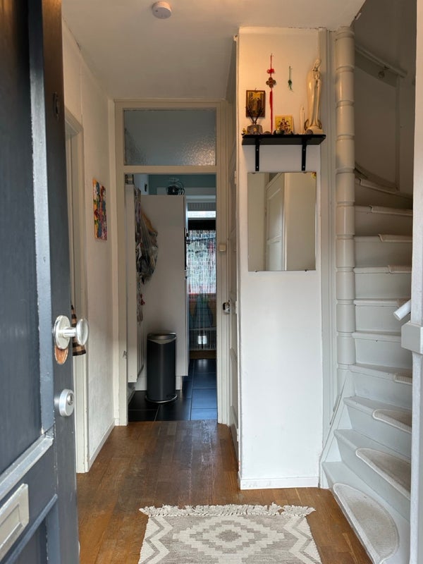 Von außen wirkt dieses Haus wie ein gewöhnliches Eckhaus, aber beim Betreten werden Sie von einer heimeligen Wärme und stilvollem Mobiliar umarmt. Der Flur mit Garderobe bildet einen zentralen Punkt in diesem Haus. Von hier aus haben Sie Zugang zum Wohnzimmer, zur Küche, zum Keller, zur Toilette und zur ersten Etage. Wenn Sie die Treppe hinaufgehen, gelangen Sie in ein geräumiges Obergeschoss mit drei Zimmern und einem Badezimmer. Einige Stufen höher, im Dachspitz des Hauses, befindet sich ein zusätzliches Schlafzimmer. Durch die stilvollen Möbel und die gemütliche Einrichtung werden Sie sich sofort in diesem schönen Eckhaus wohlfühlen.