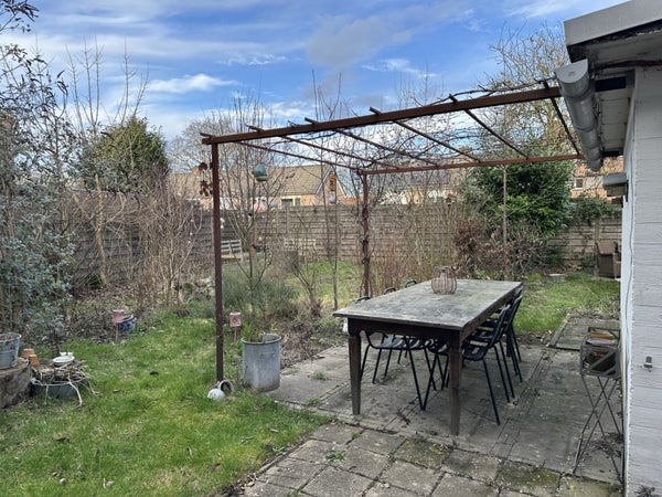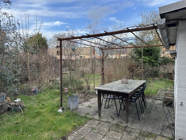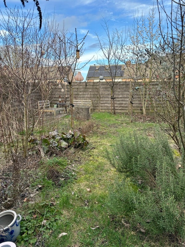 An der Seite dieses Eckhauses können Sie Ihr Auto auf einem geräumigen Stellplatz mit Zugang zum Garten parken. Der Garten ist mit heimischen Pflanzen und Blumen angelegt und bietet einen idealen Außenbereich, um die Natur und Ruhe zu genießen. Mit verschiedenen Sitzbereichen und einem Esstisch ist dies der ultimative Ort, um Ihren Sommer zu verbringen. Ein Schuppen bietet Stauraum für Gartenmöbel. Hier können Sie auch Ihr Fahrrad abstellen.