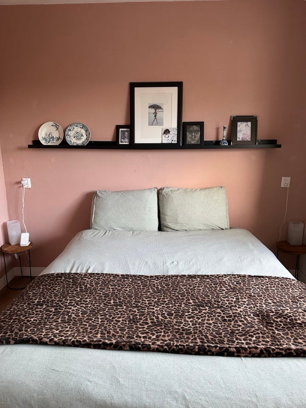 Wenn Sie die Treppe zur zweiten Etage hinaufgehen, gelangen Sie direkt in das zusätzliche Schlafzimmer. Das gesamte Obergeschoss ist schön für Gäste oder ein Familienmitglied eingerichtet, mit einem großen Bett und einem stylischen Bücherregal. Das Dachfenster bietet einen Blick auf den schönen Garten.