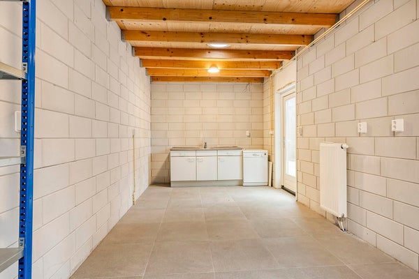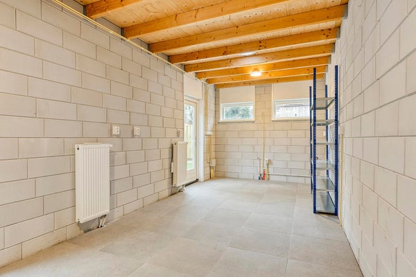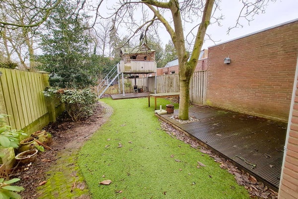 Der Hintergarten liegt nach Westen gerichtet, und durch diese Ausrichtung hast du nachmittags und abends viel Sonne. Der Garten ist sowohl von der Seite des Hauses als auch vom Esszimmer und der Waschküche aus zugänglich. Hinten im Garten befindet sich ein multifunktionaler Raum, der für verschiedene Zwecke geeignet ist. Der Garten ist pflegeleicht angelegt und mit Kunstrasen versehen und bietet viel Platz, um mehrere gemütliche Sitzecken zu schaffen und das Leben im Freien zu genießen. Außerdem gibt es ein nettes Spielhaus für viele Stunden Spielspaß.