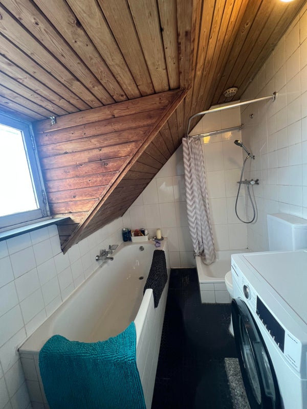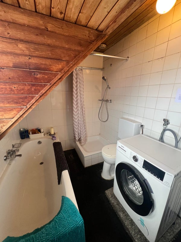 Im zweiten Stock befinden sich die Zimmer 4 und 5. Außerdem gibt es hier ein Gemeinschaftsbad mit Dusche, WC, Waschmaschine und Badewanne.