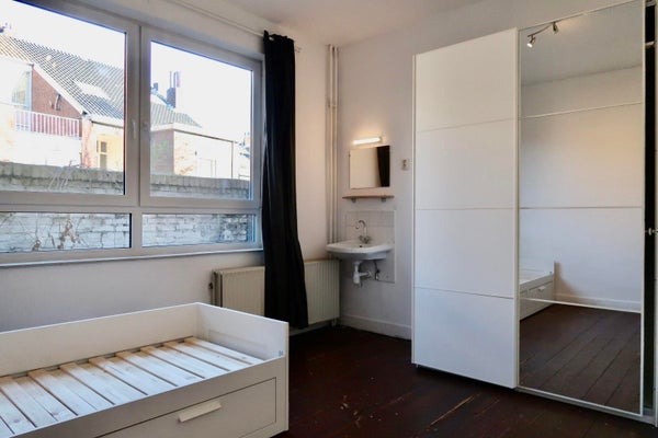 In fußläufiger Entfernung vom Vrijthof liegt dieses schöne Zimmer in einem gemütlichen Studentenwohnheim. Das Studentenzimmer befindet sich im ersten Stock an der Vorderseite des Gebäudes. Das Zimmer verfügt über 2 große Fenster und ein eigenes Waschbecken. Das Gemeinschaftsbad und die Küche teilst du dir mit 3 anderen Bewohnern.