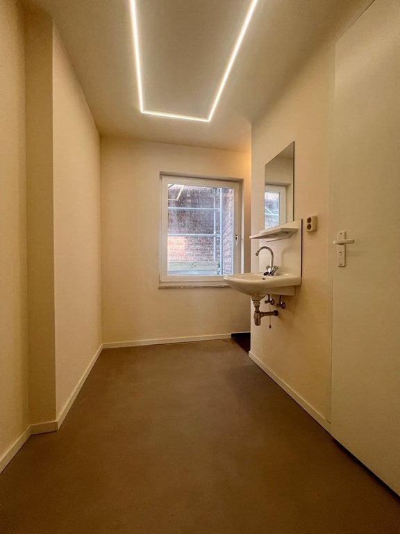 Kompakter Raum (insgesamt 20 m2) mit viel Tageslicht, wobei der Wohn-/Schlafbereich (12 m2 inklusive offener Küche) an der Vorderseite liegt und sogar einen Blick auf die Maas bietet. Die offene Küche ist mit einem Kochfeld, einem Dunstabzug und einem Kühlschrank ausgestattet. Am hinteren Ende des Studios befindet sich das Badezimmer, das über eine separate Toilette, ein Waschbecken und eine Duschkabine verfügt. Außerdem bietet das Badezimmer Platz für einen (Kleider-)Schrank.