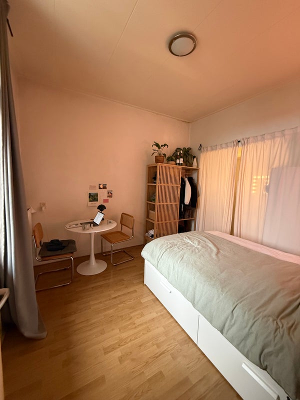 Das betreffende Zimmer befindet sich im Erdgeschoss an der Rückseite des Gebäudes. Angrenzend finden Sie die Küche und das Badezimmer, die mit 3 anderen Mitbewohnerinnen geteilt werden. Es gibt auch einen großzügigen Garten, der geteilt wird, dieser befindet sich im Südosten. Von dem Zimmer aus können Sie auch direkt zum Garten gelangen, da es Fenstertüren gibt.